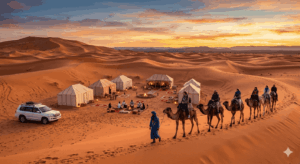 Finally, the 2026 tourism market has seen a “fragmentation” of price points. A basic three-day désert marrakech tour may cost between 150 and 200 USD, while a private, luxury glamping experience can exceed 600 USD per person. Analytically, the difference in cost often reflects the quality of the vehicle, the expertise of the guide, and the privacy of the camp. For those seeking the “best of both worlds,” a one-way desert trip that starts in Marrakech and ends in Fes is an efficient way to save time and see the Middle Atlas cedar forests. This “open-jaw” itinerary is increasingly popular for those wanting to see as much of the Kingdom’s diverse topography as possible in a single trip.